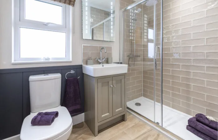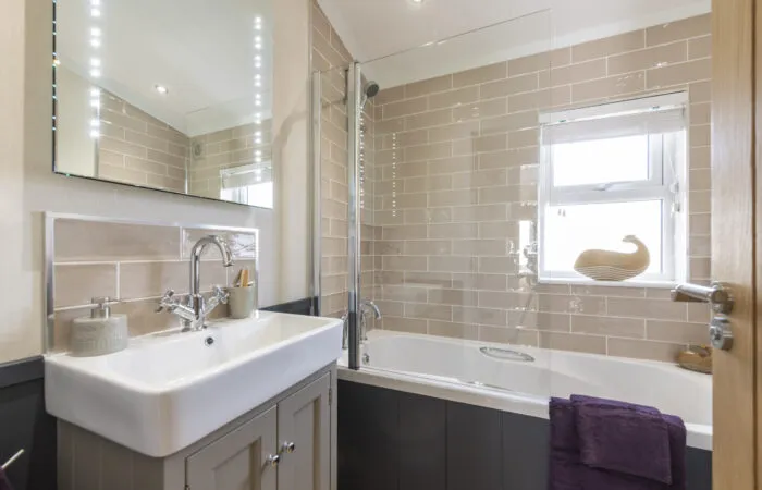 • Graphite grey half panelled walls to the bathroom and en-suite