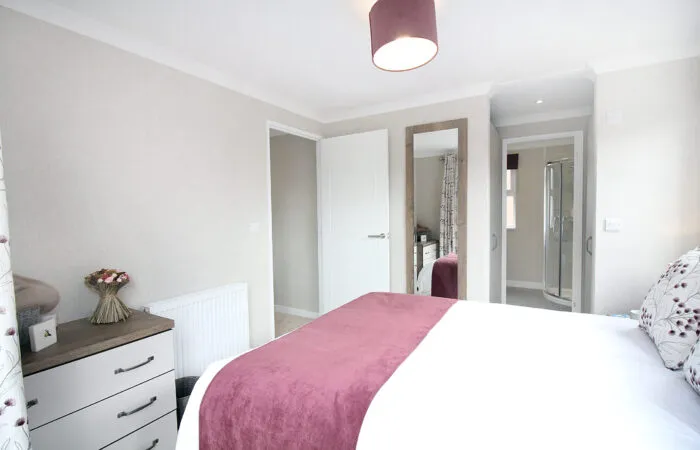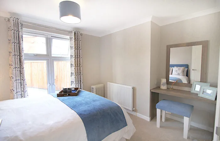 • Freestanding bedside cabinets and wall-mounted mirrors to both bedrooms